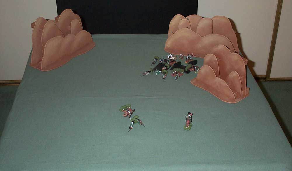 Next, the Ballyfoole force headed towards the hills to the east to clear it of any enemy forces. Once again they found a small force of Pathans taking potshots from behind the rocks. And once again a brief firefight saw to the Pathans, while the Ballyfoole forces suffered no losses this time.